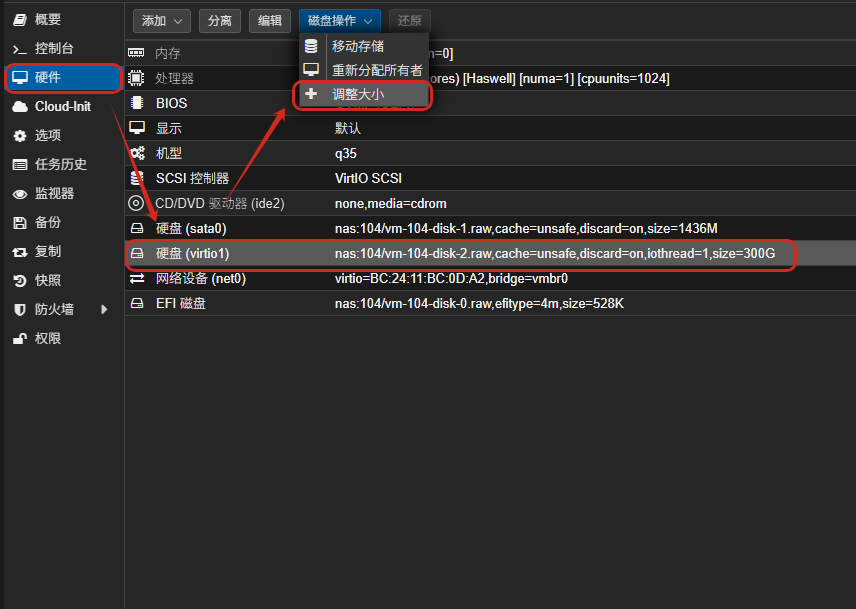 PVE扩容Mac虚拟机磁盘